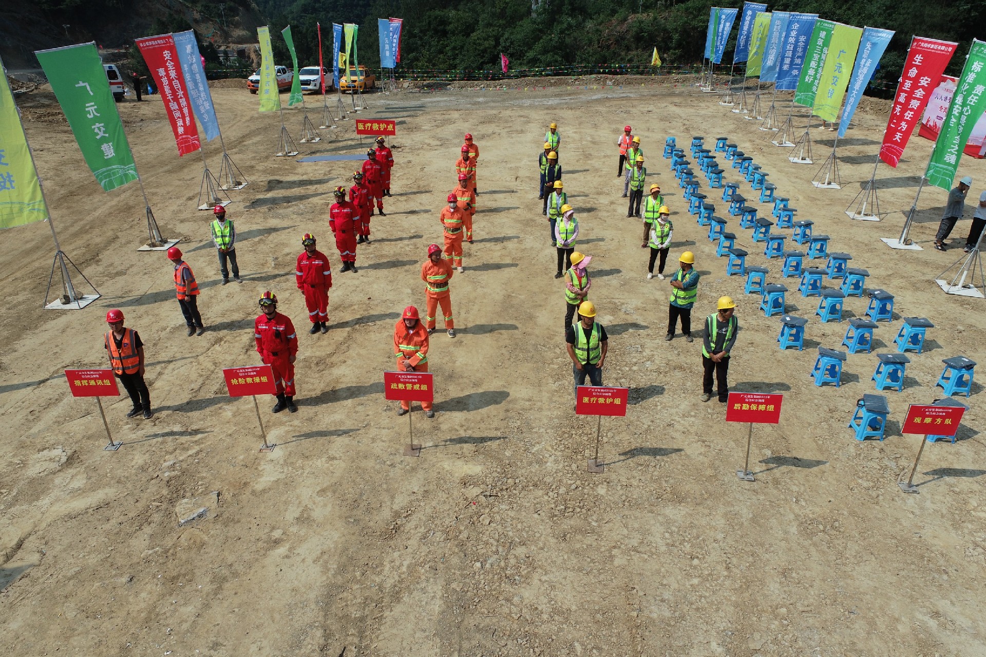 广元市利州区荣山镇高坑口至周家坝公路工程项目开展防汛、地质灾难暨森林火灾扑救综合应急演练,通过实火杀绝、沙袋填装等实操演练,周全磨练应急反应能力。