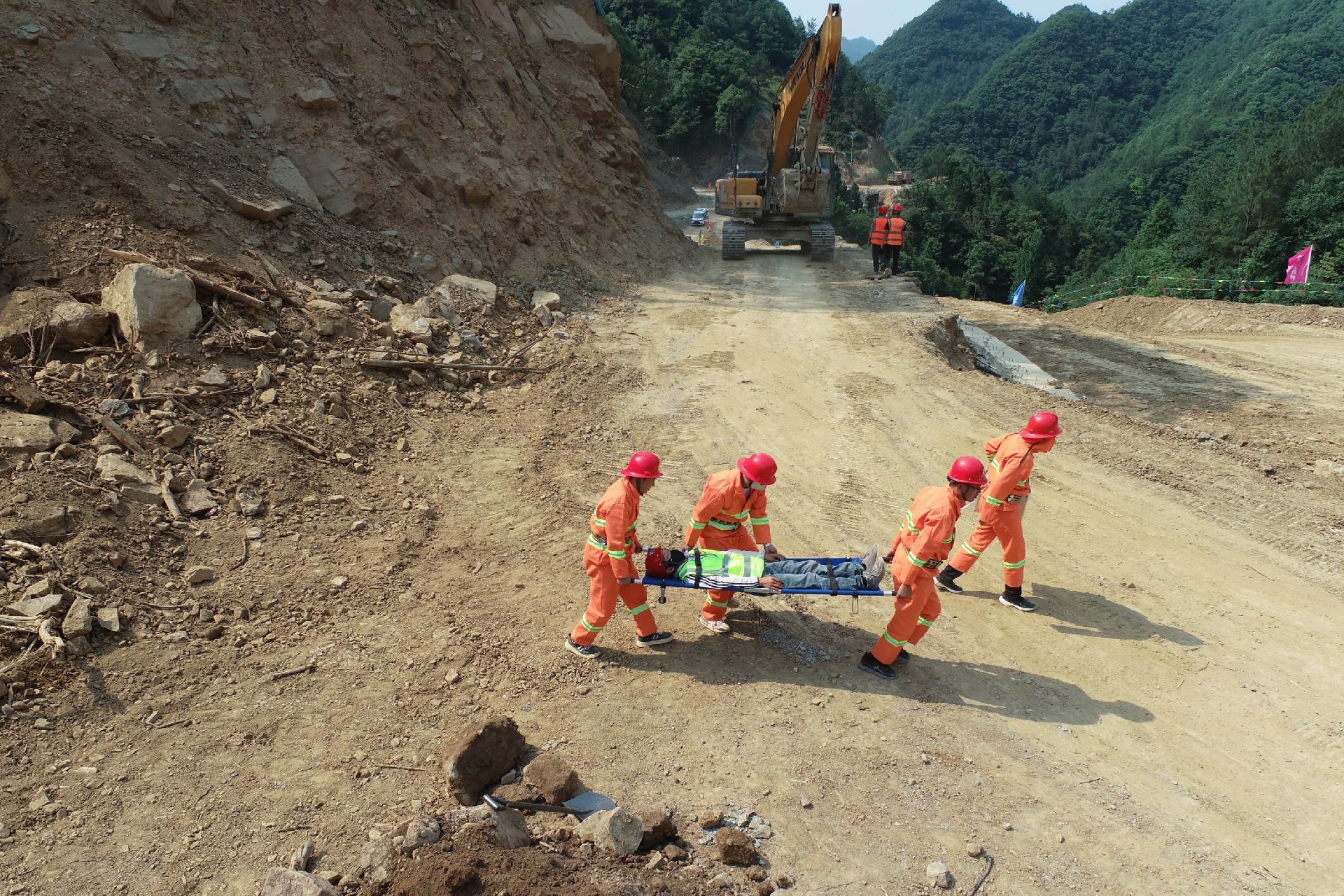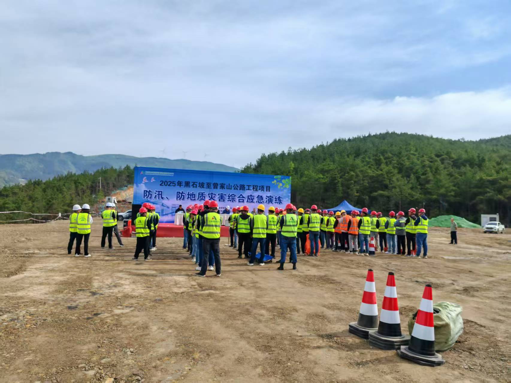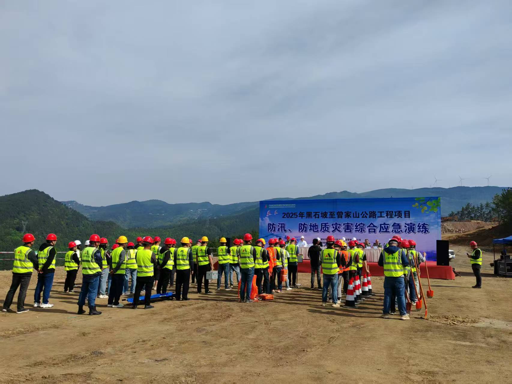 黑石坡至曾家山公路工程项目开展防汛、防地质灾难综合应急演练,多维提升项目部应对突发事务的协调指挥、现场处置惩罚等能力。