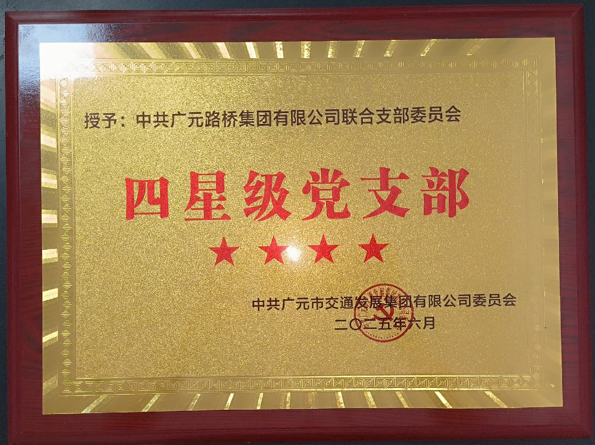 6月27日,市交发集团党委召开庆祝中国共产党建设104周年表扬大会,3044am永利集团团结党支部被评为“四星级党支部”,并获“先进党组织”声誉称呼。